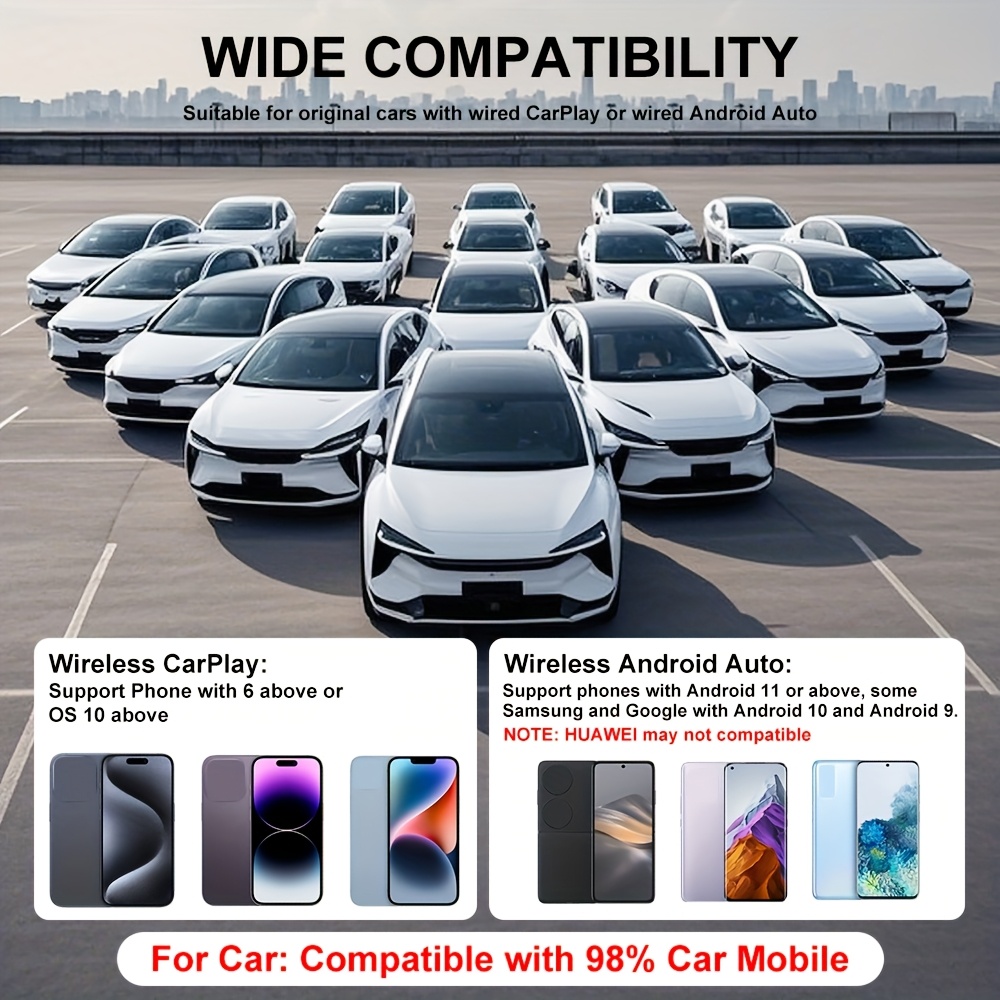 - Verwandelt kabelgebundenes Apple CarPlay & Android Auto in eine kabellose Lösung