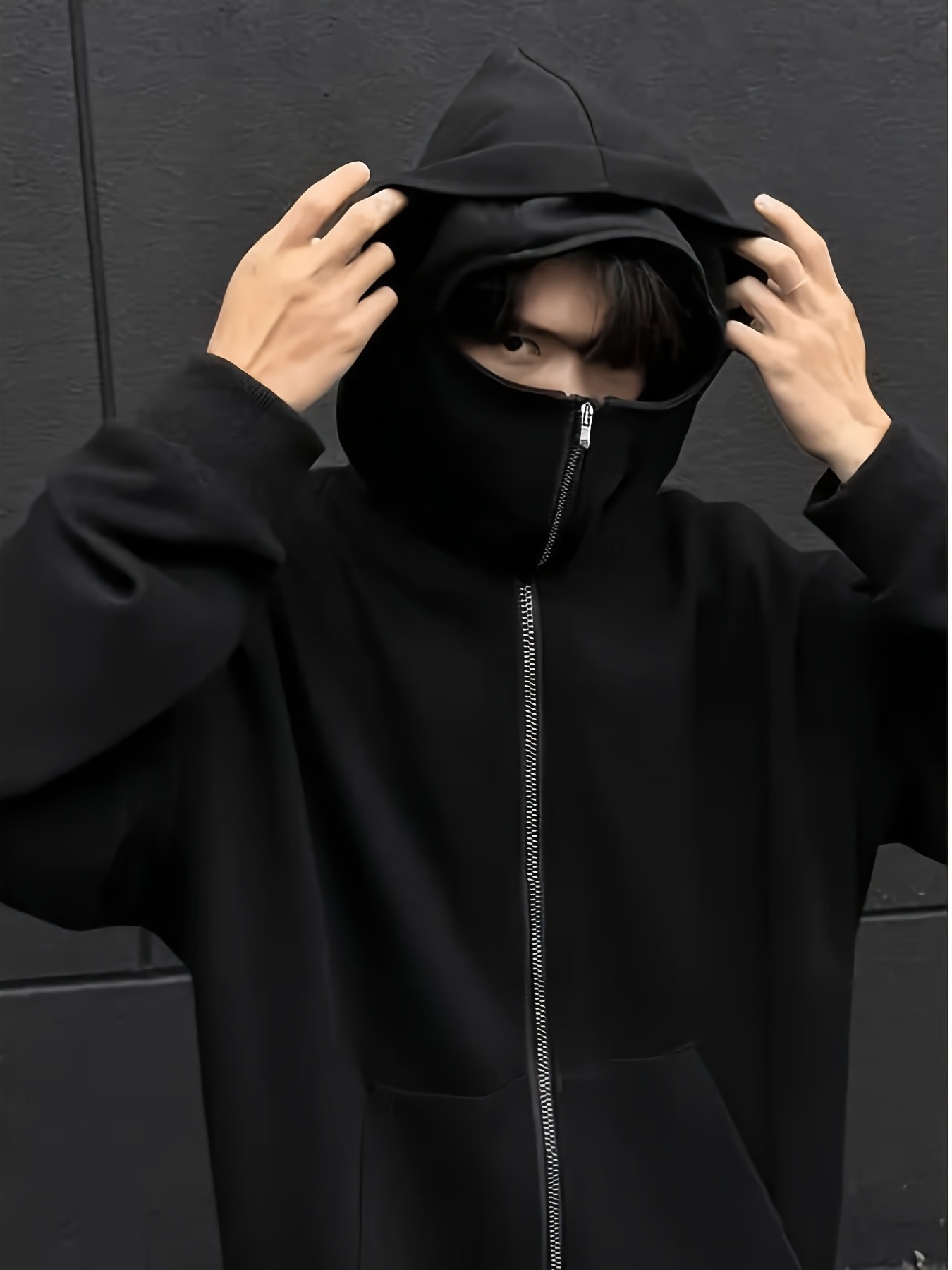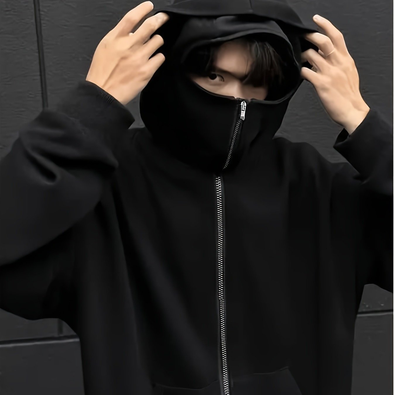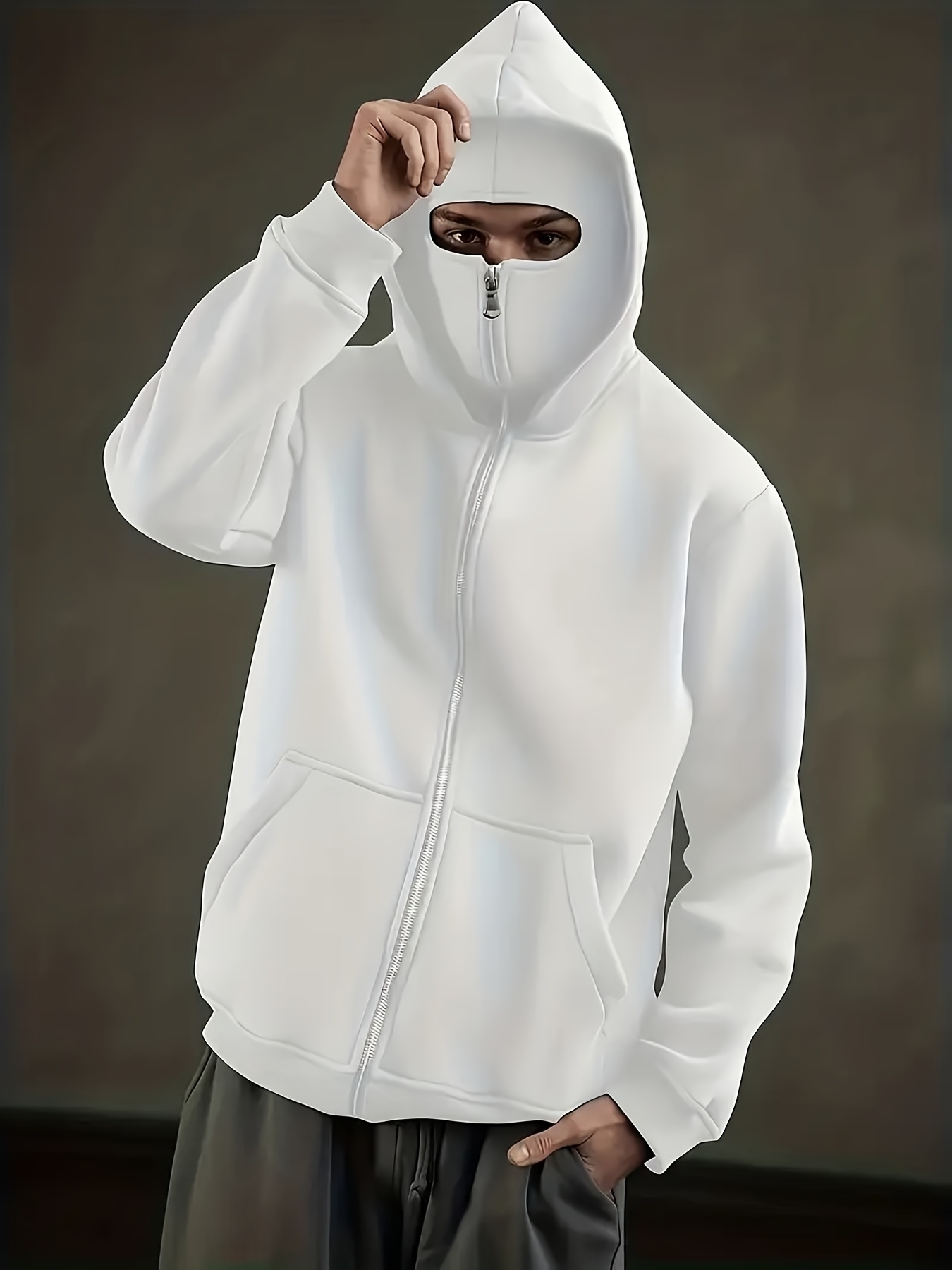 Windsichere Jacke mit Gesichtsschutz